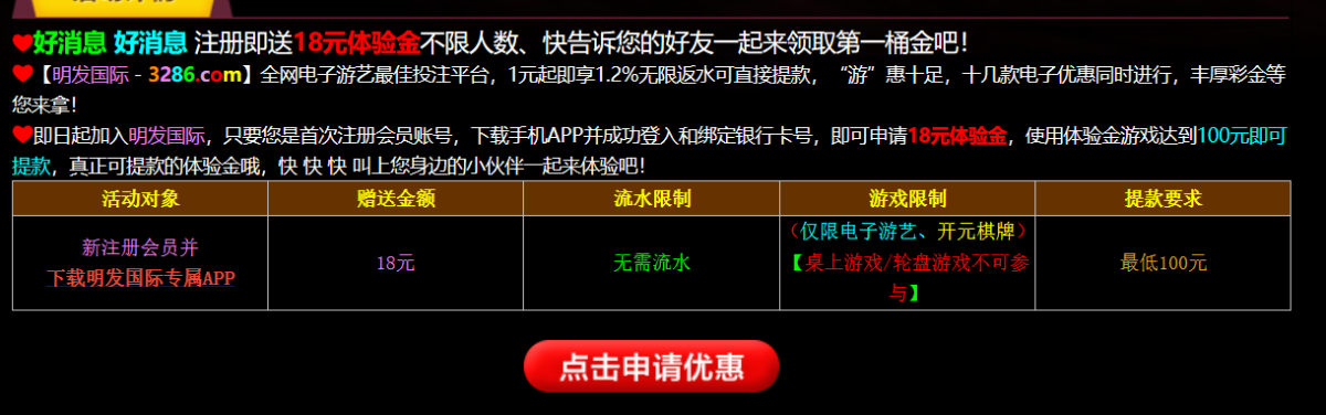 活动详情:下载app送18元彩金/最低100元提款